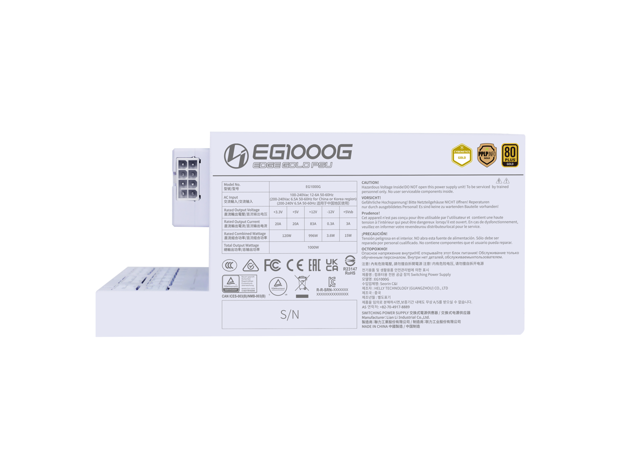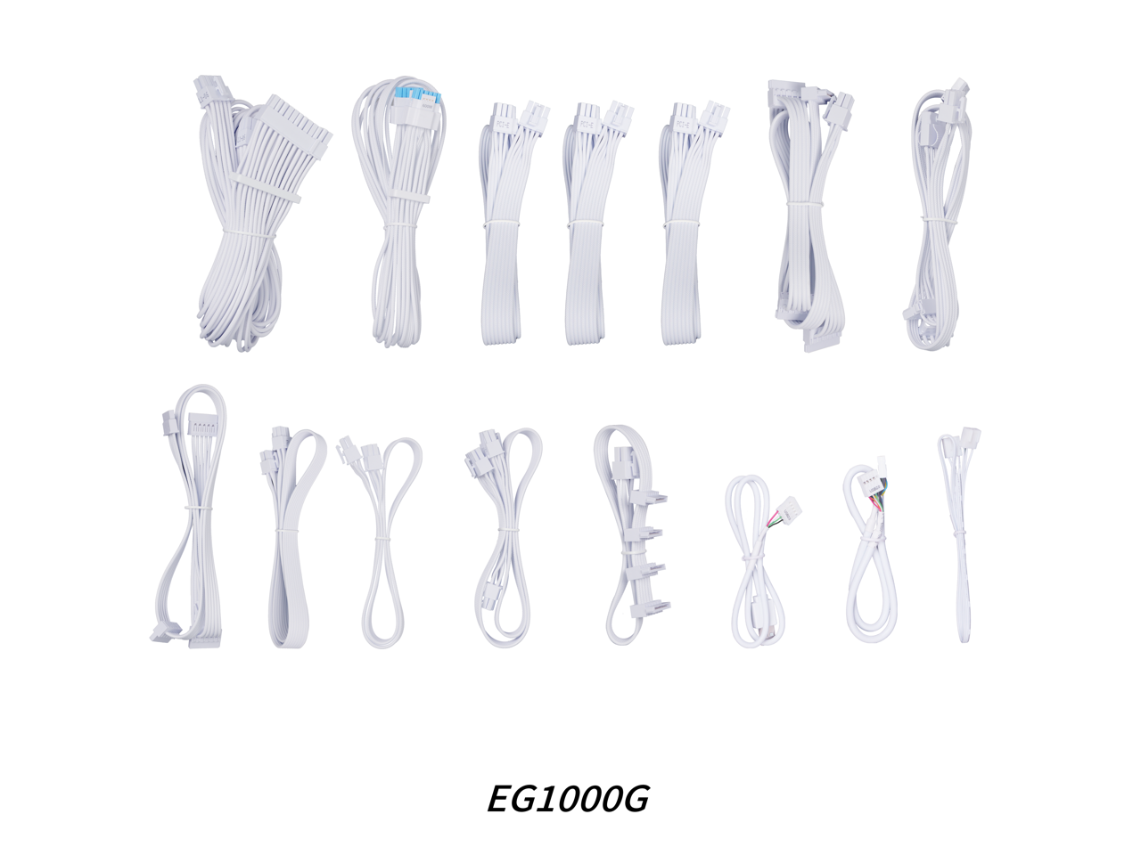 - Connector 12V-2X6 for GPUs: The EG1200G model includes dual 8-pin to 12VHPWR connectors, allowing easy future GPU upgrades. NOTE: Only the 1200W variant has dual connectors; other models (EG1000G, EG0850G, EG0750G) feature a single 12V-2x6 cable.