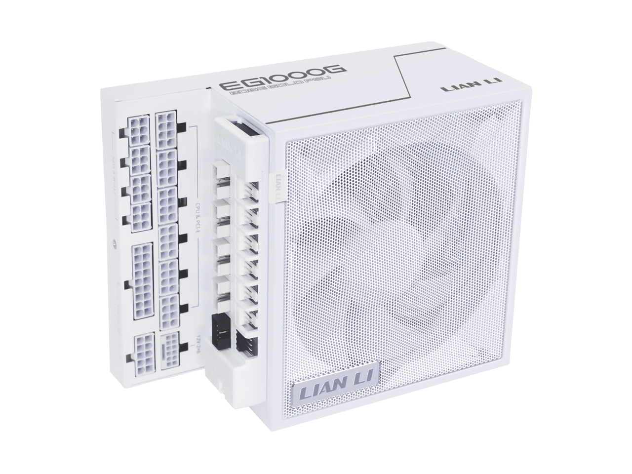 Lian Li Edge Serie - 1000W Full Modular Power Supply (Fan USB Hub Included) - Gold - ATX 3.1 - PCIE 5.1 Support - 12V-2x6 Connector - L-Shape Design for Dual Chamber Case - White (EG1000G.WH)