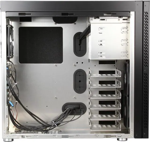 Ample SpaceSupports a video card as long as 280mm (with HDD trays installed) and 420mm (when HDD trays removed), a CPU cooler up to 170mm in height, and a PSU up to 280mm in length, plus six 3.5" HDDs or seven 2.5" HDDs (one behind the MB tray).