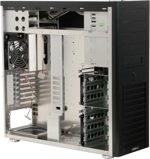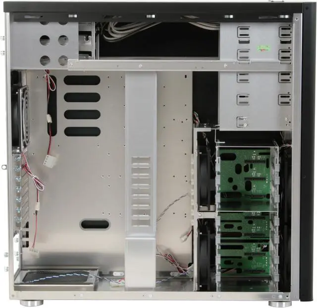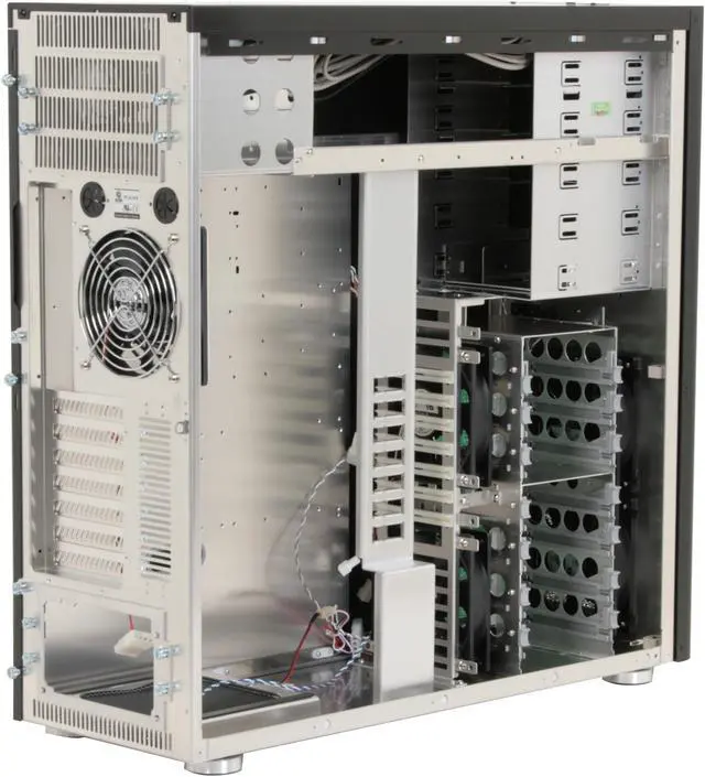 Huge internal space fits E-ATX motherboard, and graphics card, which can up to 345mm long, and there are room for 10 hard drivers, there are space for dual power supply units. There are total of 6 x 12cm cooling fans to cool the system down, and a lot of internal space for liquid cooling system. It is an ideal for gamer and pro user!