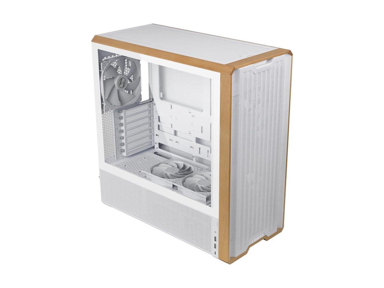 Lian Li LANCOOL 217 Genuine Walnut Wood Computer Case, Mid-Tower ATX PC Case with 5 Pre-Installed PWM Fans 2x170mm, 2x120mm & 1x140mm, Flexible PSU & Cable Installation - White (LAN217W)