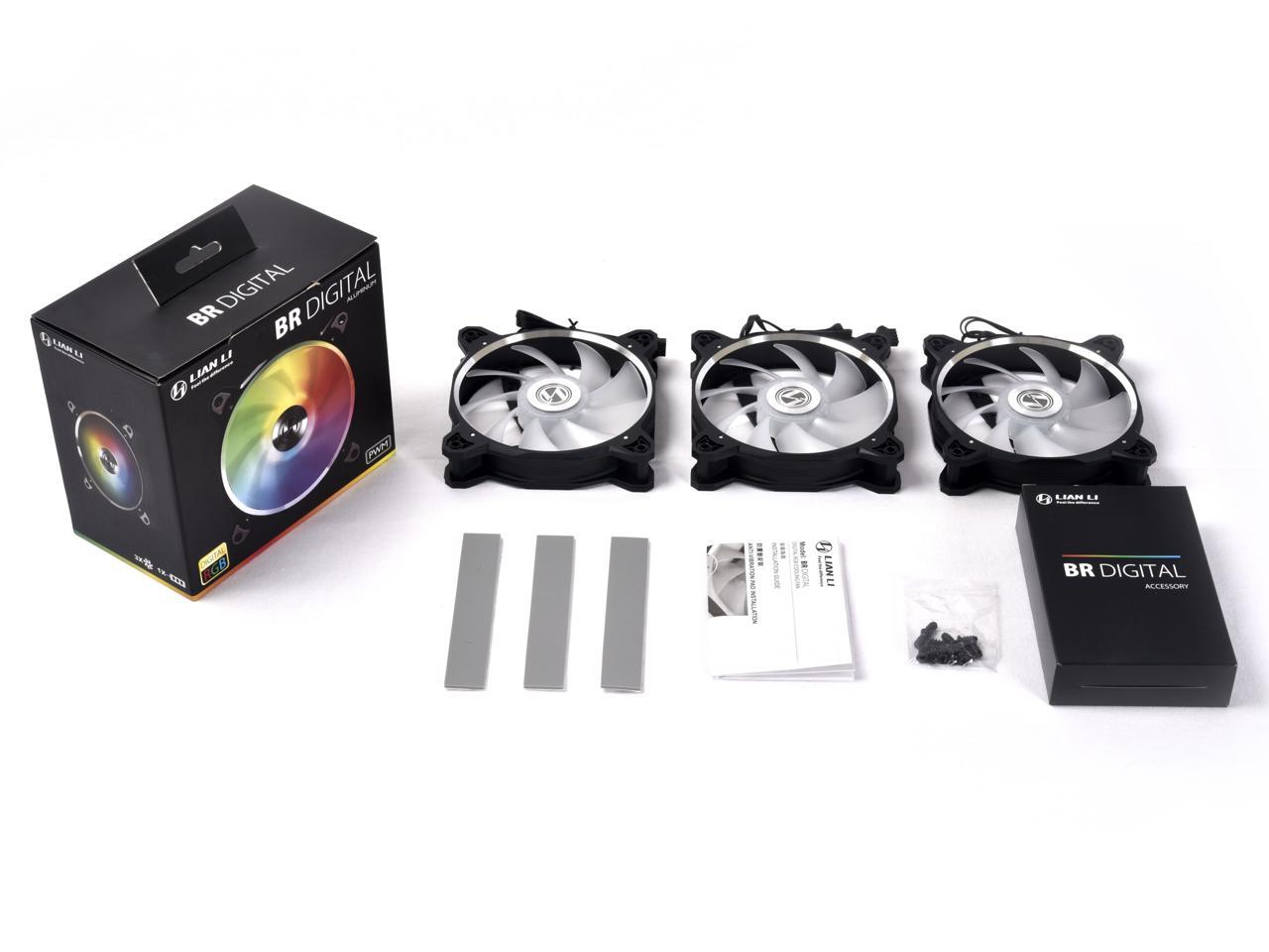 LIAN LI BORA DIGITAL Series RGB BR DIGITAL-3R B, 120mm Addressable RGB LED PWM Fan, 3 FANS Pack - Black Frame