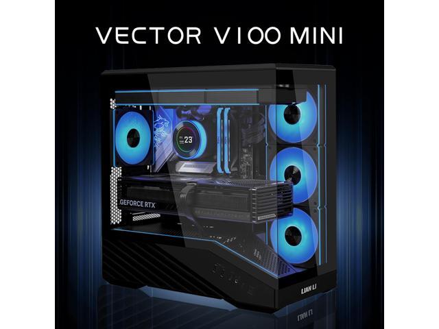Lian Li VECTOR V100 MINI Micro Form Factor Compact PC Case, Pre-install 4 x 120mm ARGB PWM Fans, Panoramic Tempered Glass, Support Backet-Connect Micro-ATX, 415mm GPU, 360mm Radiator - Black(V100RMIX)