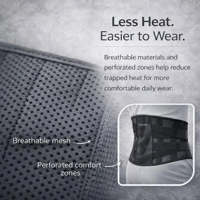 STAYS CENTERED WITH CROSS-TENSION SUPPORT: Criss-cross tension straps help keep the back brace aligned on your lower back, reducing shifting and rolling when you sit, walk, bend, or stand up.