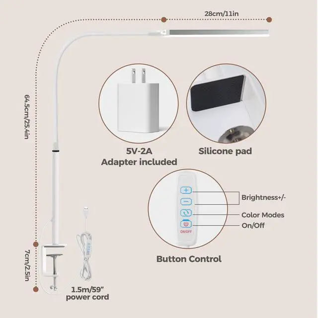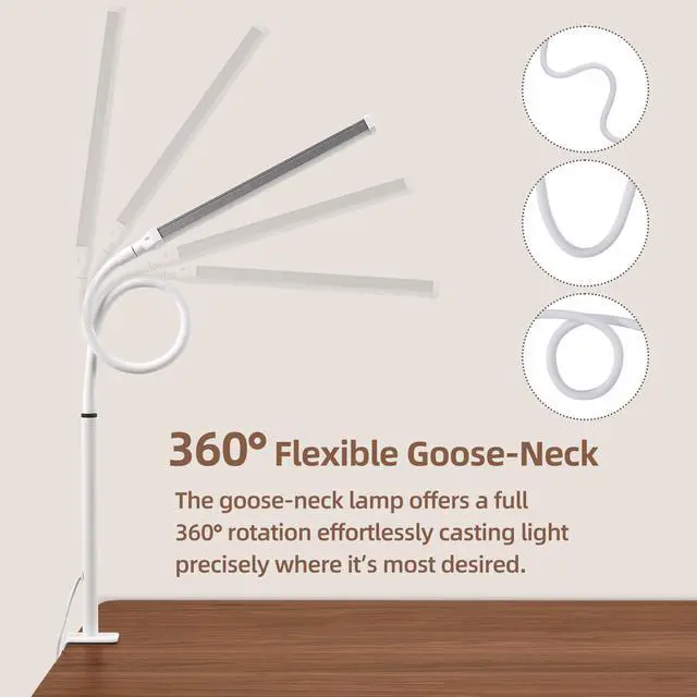 Flexible Goose-neck and Space Saving: Our table lamp with a solid clamp and long flexible goose-neck arm, allows you to easily adjust the light to shine exactly where you need it. It's the perfect way to provide illumination to your desk without compromising space.