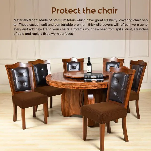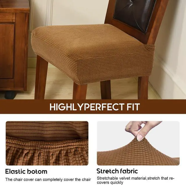 Seat covers for dining room chairs with good stretchet material to fits well and serves its purpose superbly to protect and help prevent the cloth dining chairs from the kids food, cat's scratching or other pets stains.