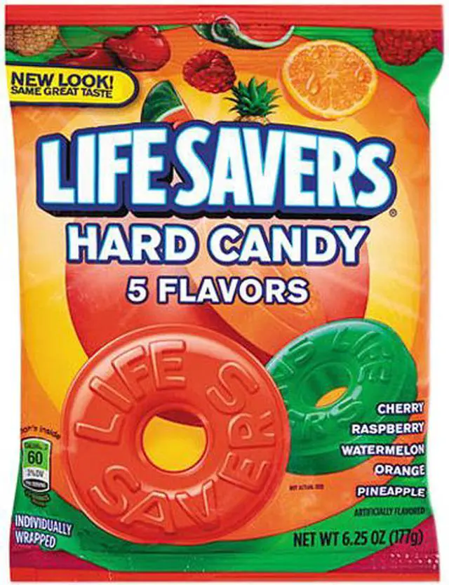 | Features | Hard candy is a great treat Everyday theme 6.25 oz. of individually wrapped package Assorted-color flavors include: orange, raspberry, cherry, pineapple, and watermelon Individually wrapped Life Savers let you pick out your favorites without ruining the rest in the bag |