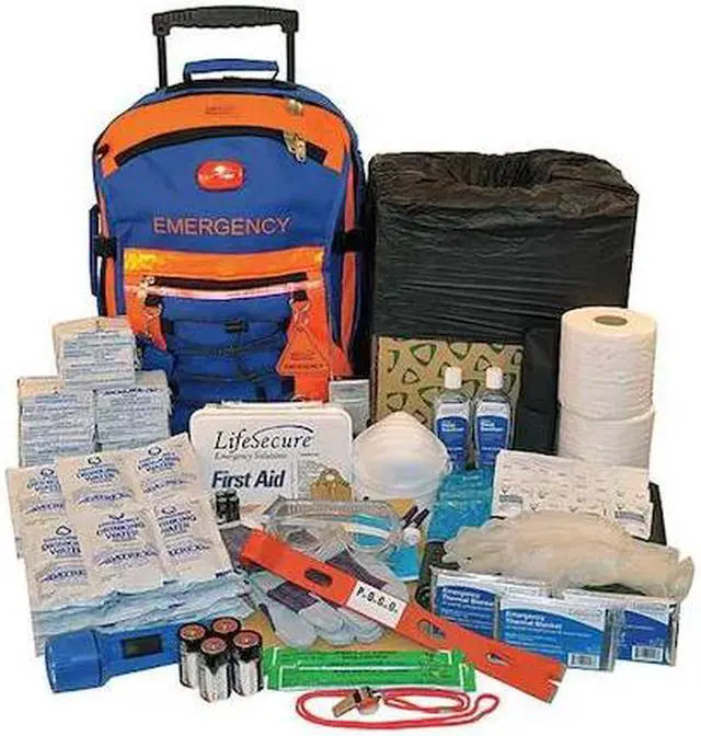 Survival Kit, Number of Components 146, People Served 30, Case Material Nylon, Color Blue and Orange, Height 21 in, Length 14 in, Width 13 in