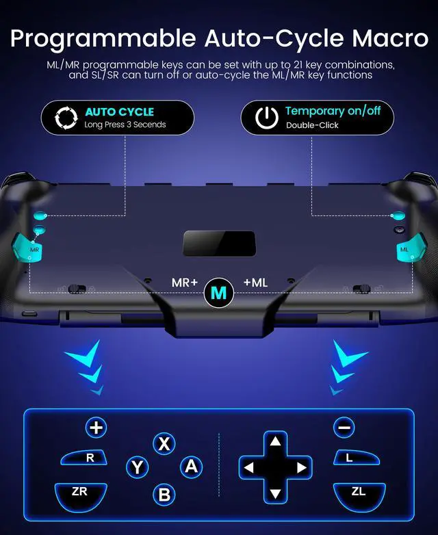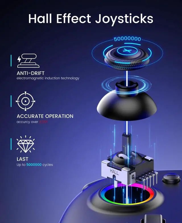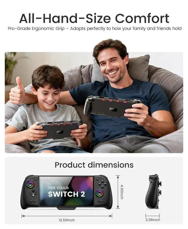 Switch 2 Controller, Wireless Switch Pro Controller with Drift-Free Hall Effect Joystick, One-Piece Joypad with Macro Programming, RGB Light, Turbo, and Ergonomic Handheld Design
