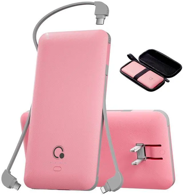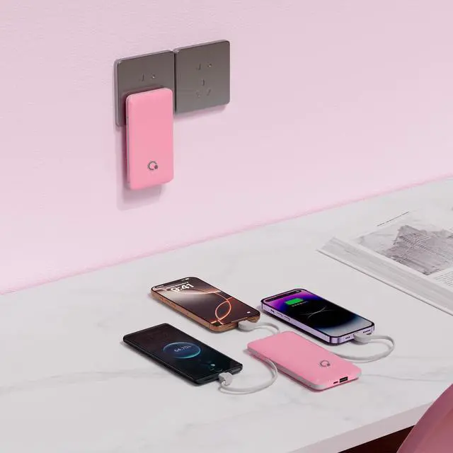 Your electronic device will be charged by power bank automatically once connected with the built-in cable. If not, please press the power button to turn on the power bank