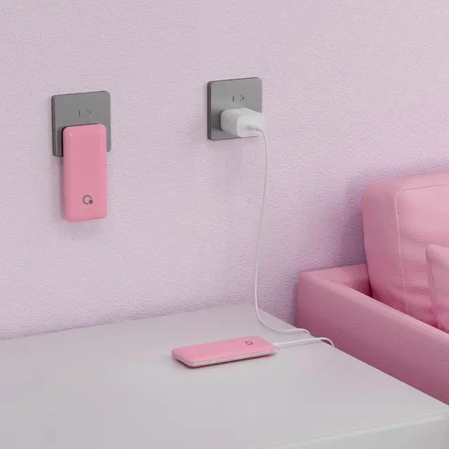Put the built-in AC plug of the power bank into the AC outlet. The LED lights will illuminate and indicate battery level in the power bank. When all 4 LED lights are on and solid/none are flashing, the power bank is fully charged.(It will take about 8 hours to fully charged the power bank from AC outlet)
