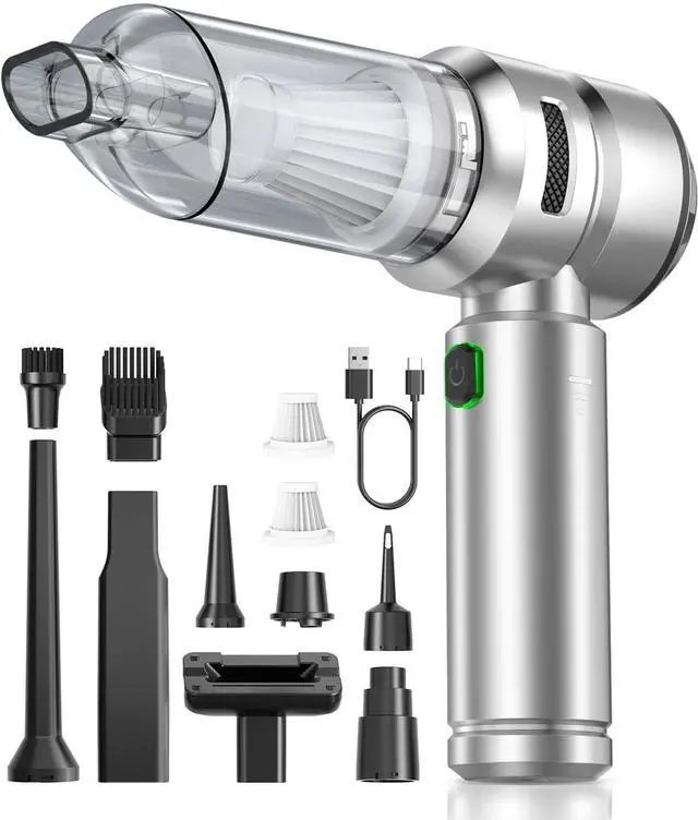 VNOST Car Vacuum,3 Suction Modes,Portable Mini Cordless Cleaner with 24000pa Suction Power,Type-C Charge,Handheld Vacuum for Home,Car, Office Desk, Keyboards(Light Silver)