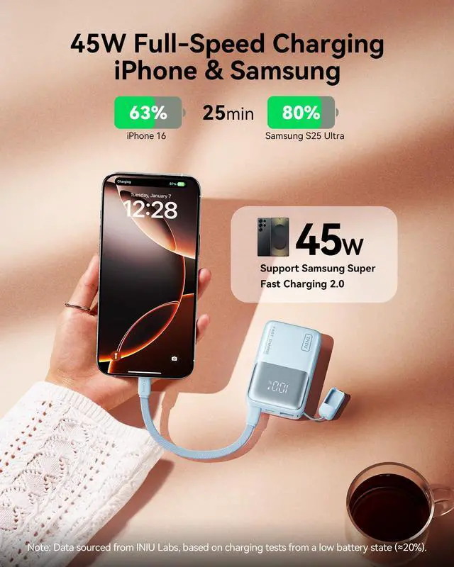 Usually an external battery could supply 60%-70% power to other devices. Approximately 30-40% of the battery capacity is lost in circuit heat and voltage conversions.So a fully charged INIU 10000mAh power bank can offer 6000-7000 mAh to your devices.