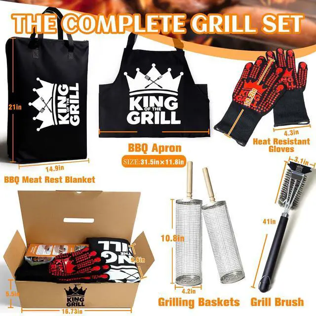 | Included Components | BBQ Apron for Men, BBQ Blanket for Resting Meat, BBQ Gloves Heat Resistant Cooking, Grill Basket, Grill Brush |