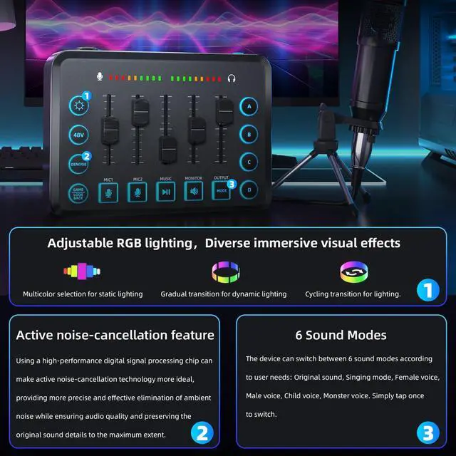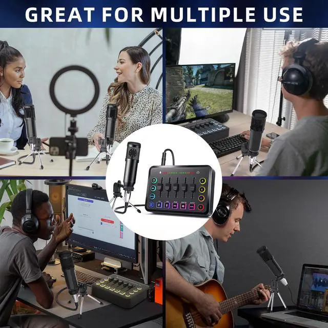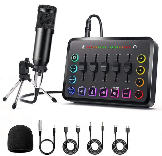 The podcast equipment kit includes an audio mixer, BM800 microphone, stand, and various necessary connecting cables. The mixer controller is specifically designed for live streaming and podcast recording, providing excellent sound quality and intuitive control functions, supporting various sound adjustments. It is compatible with various operating systems and smart devices. One of the product features is its integrated design, making it simple and easy to operate so that even beginners can use it effortlessly. The equipment offers functions such as voice modulation, noise reduction, multiple adjustments, and custom recording capabilities to enhance your creative recording experience. Purchasing the kit entitles you to a 60-day no-questions-asked return policy! If you have any questions, please feel free to notify us, and we will provide a solution within 12 hours.