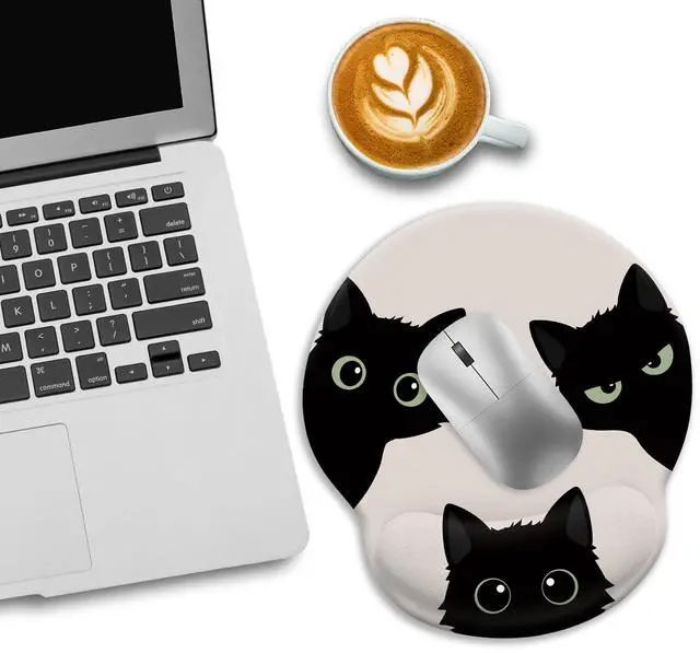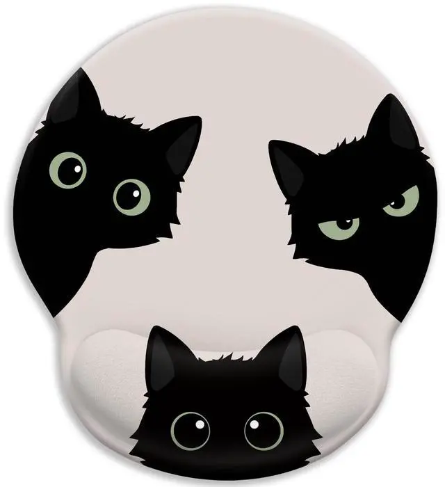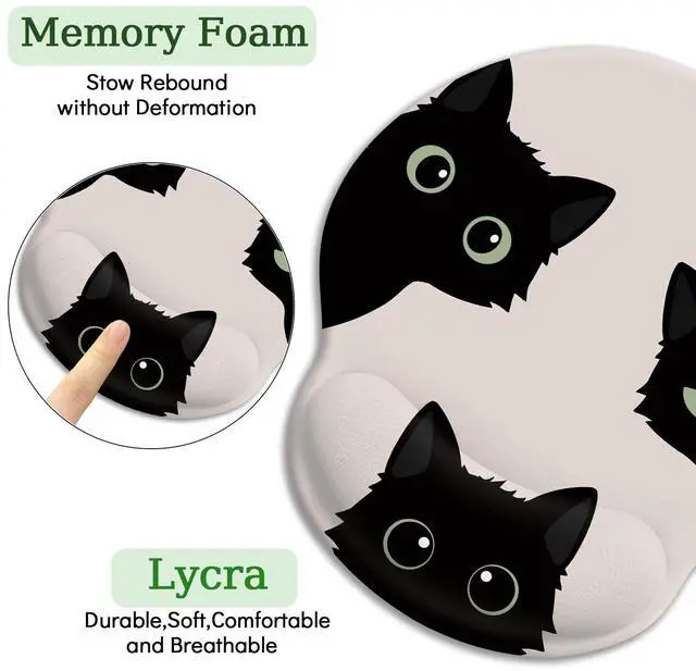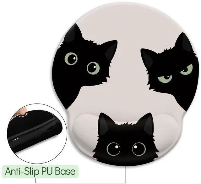 Black Cat Mouse PadErgonomic Mouse Pad with Wrist Rest, Gaming Mouse Pad Wrist Support with Non-Slip Pain Relief PU Base, Funny Cat Mouse Pads for Desk, Cute Office Desk Accessories Decor Office Supplies Gift for Men Women Teen Girls