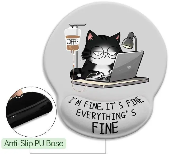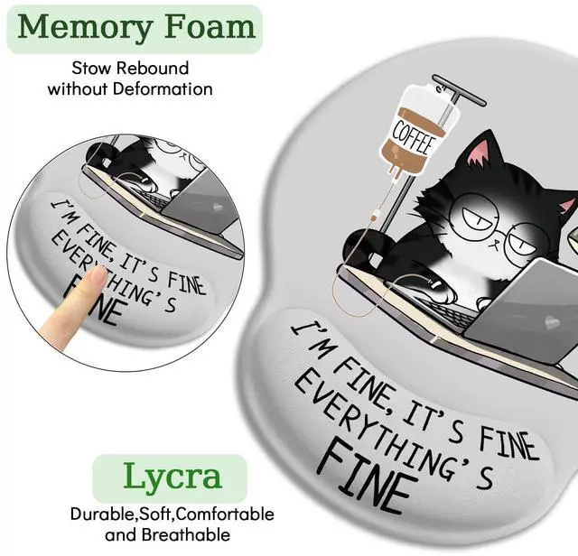 Cat Ergonomic Mouse Pad with Wrist Rest, Gaming Mouse Pad with Wrist Support, Funny Black Cat Mouse Pads for Desk, Computer Mousepad for Laptop, Cute Office Desk Accessories Office Supplies Gift for Men Women Teen Girls, It's Fine I'm Fine Everything is fine