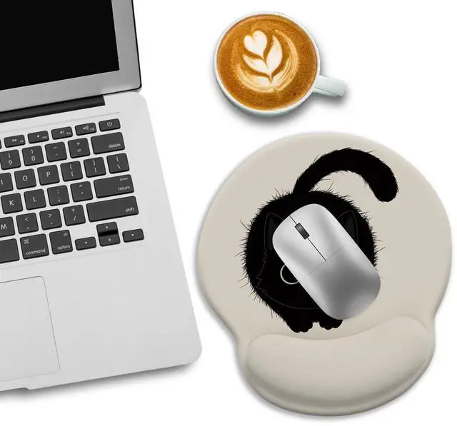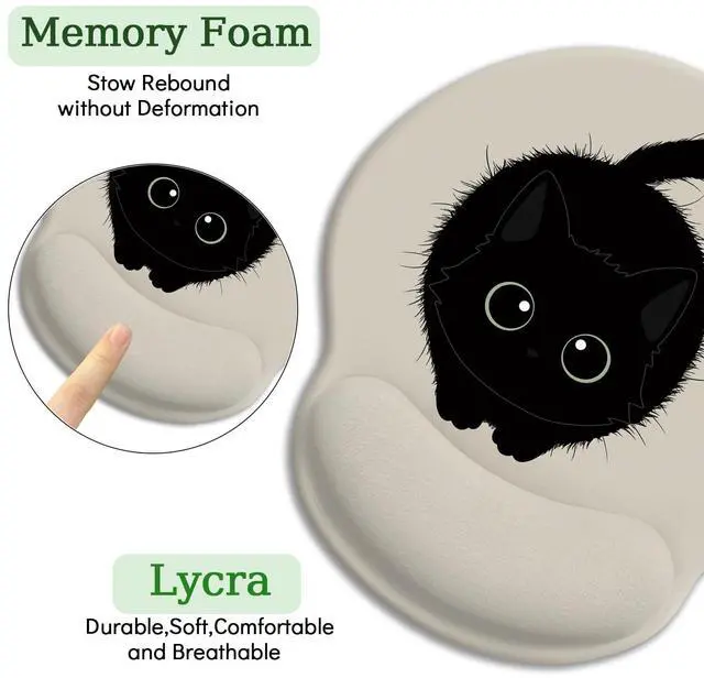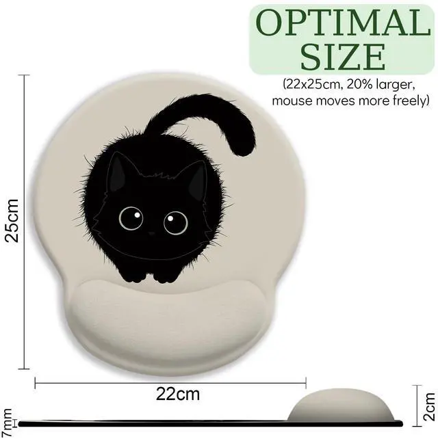 Cat Ergonomic Mouse Pad with Wrist Rest, Gaming Mouse Pad with Wrist Support, Black Cat Mouse Pads for Desk, Funny Mousepad with Non-Slip Pain Relief PU Base, Cute Office Desk Accessories Decor
