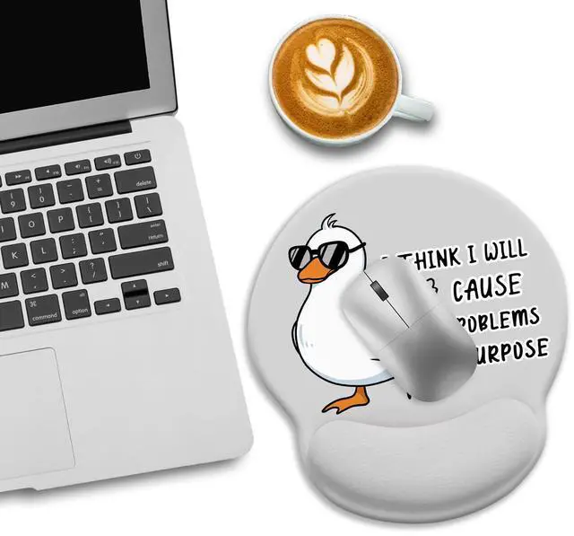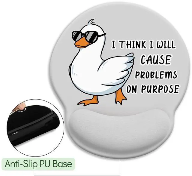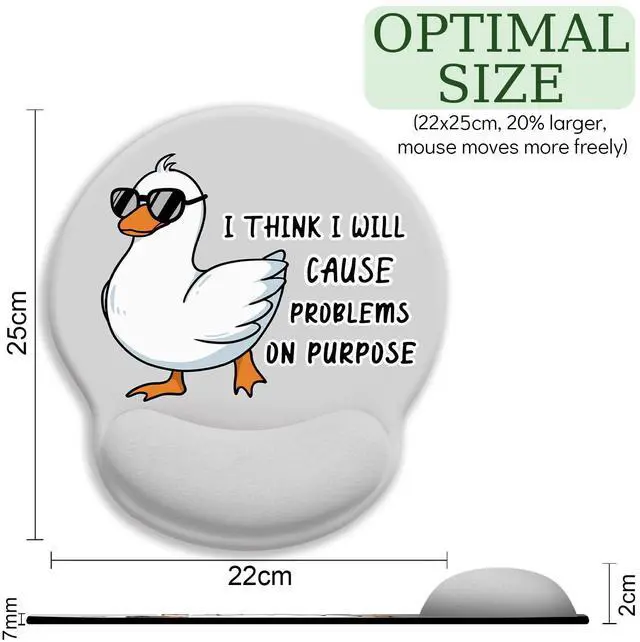 Ergonomic Mouse Pad with Wrist Rest, Funny Saying Quote Mouse Pads for Desk, Gaming Mouse Pad Wrist Support, Cute Duck Mousepad with Non-Slip Pain Relief PU Base, Cute Home Office Desk Accessories Decor I Think I will Cause Problems on Purpose