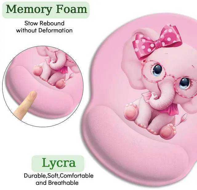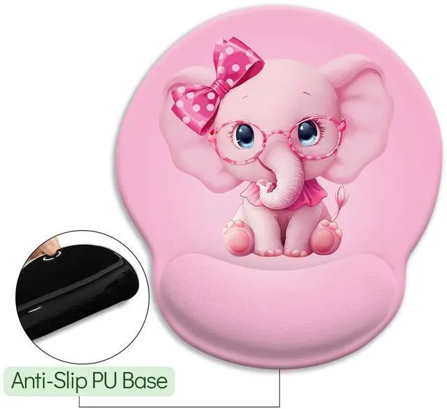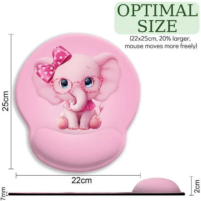 Pink Elephant Ergonomic Mouse Pad with Wrist Rest, Gaming Mouse Pad with Wrist Support,Cute Girly Kawaii Mouse Pads for Desk, Computer Mousepad with Non-Slip Pain Relief PU Base, Cute Elephant Pink Office Desk Accessories Decor