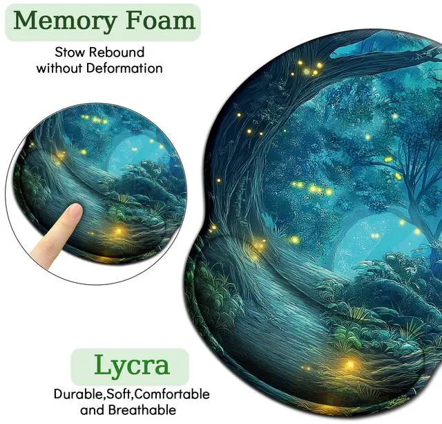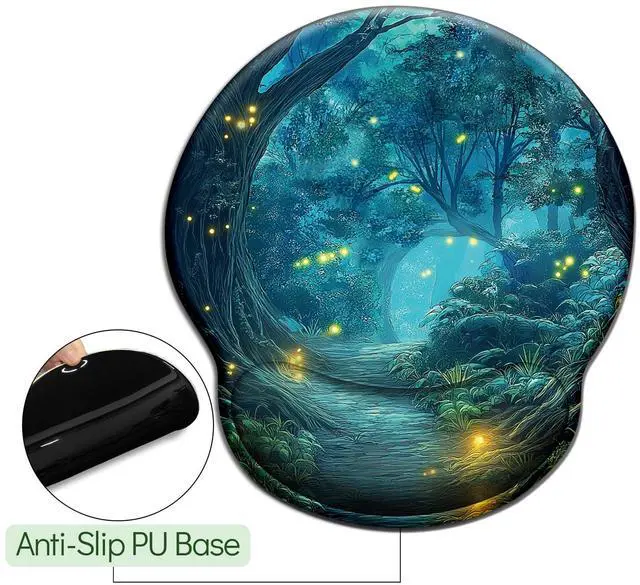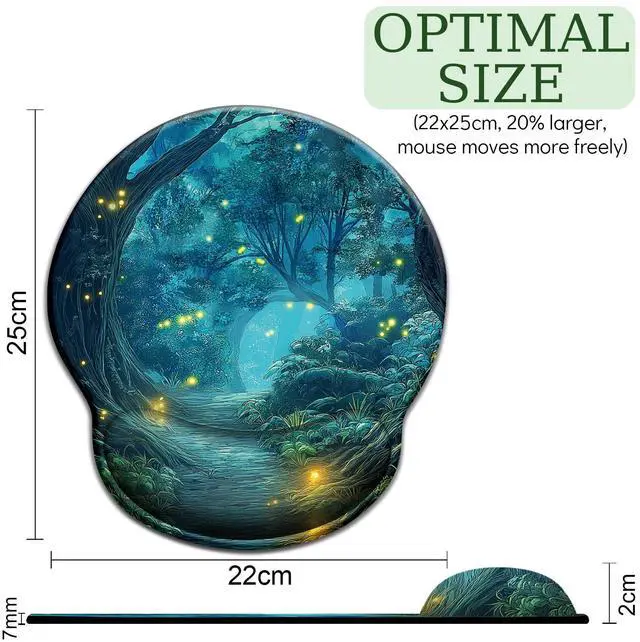 Firefly Forest Ergonomic Mouse Pad with Wrist Rest, Gaming Mousepad Gel Wrist Support with Non-Slip Pain Relief PU Base, Comfortable Computer Mouse Pads for Desk, Cute Kawaii Home Office Desk Accessories Decor