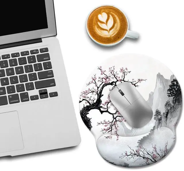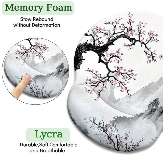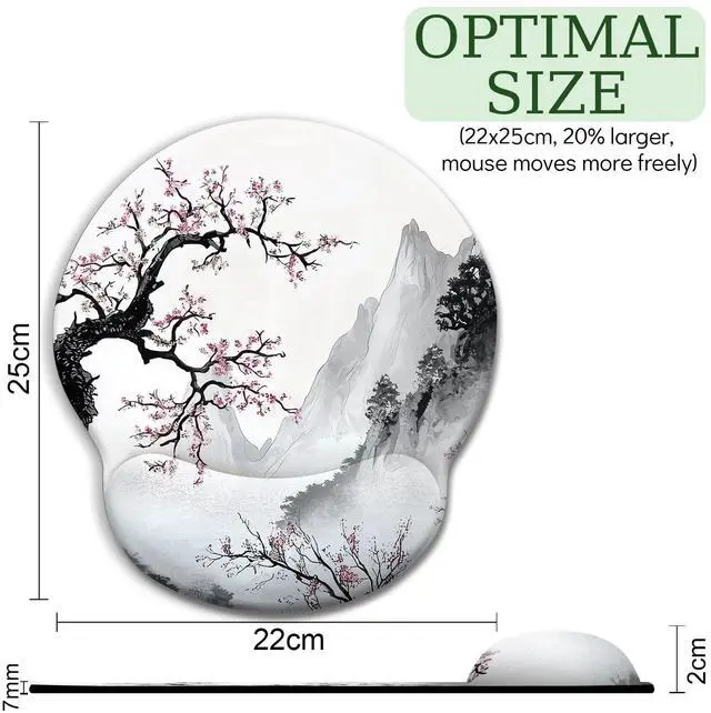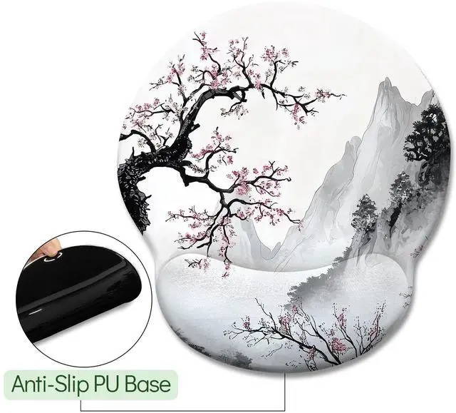 Japanese Style Cherry Blossom Ergonomic Mouse Pad with Wrist Rest, Gaming Mouse Pad with Wrist Support, Funny Mouse Pads for Desk, Computer Mousepad with Non-Slip Pain Relief PU Base, Cute Funny Aesthetic Office Desk Accessories Home Decor