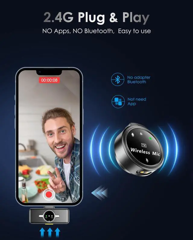 A: No. This compact wireless microphone is specifically designed for audio and video recording. Its Bluetooth function only supports the connection between the microphone and its receiver, not with your phone.