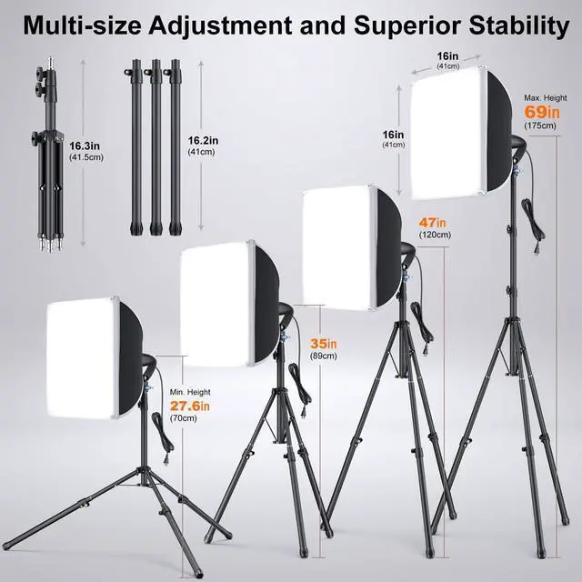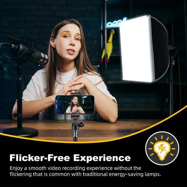 Enjoy excellent light-filling performance with flicker-free softbox, designed to protect your eyes and reduce fatigue. High-quality IC and LED chips ensure stable, strobe-free lighting, making night-time video recording hassle-free and comfortable.