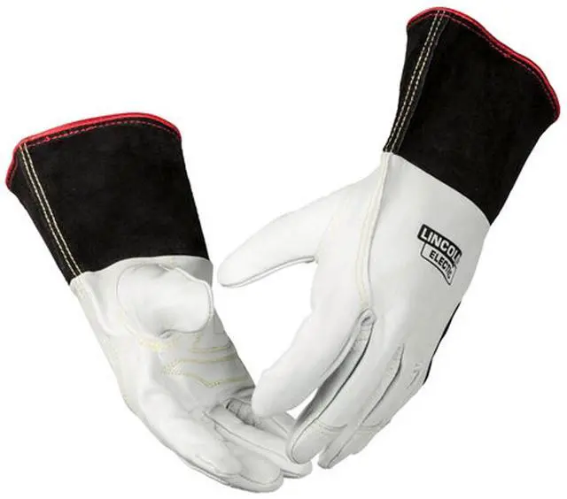 These premium TIG welding gloves are made of white top grain goatskin and black split cowhide to offer excellent dexterity and comfort while enhancing heat resistance and durability.