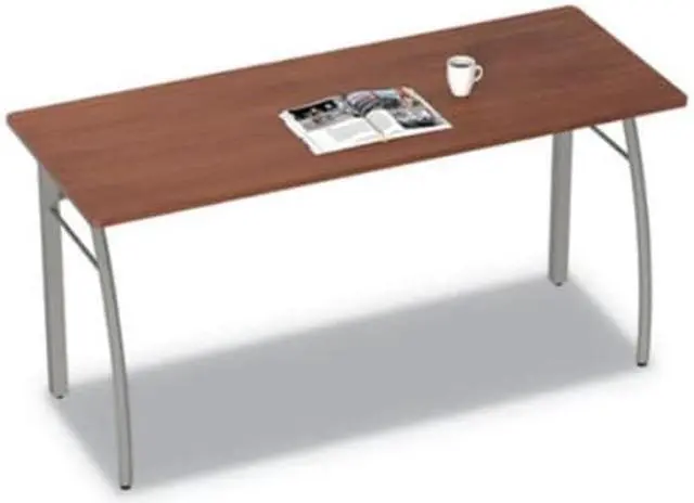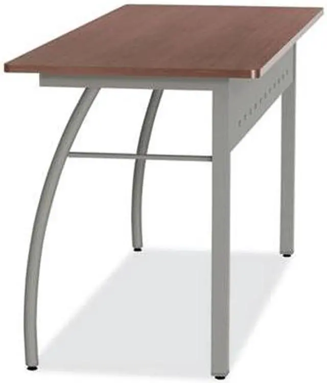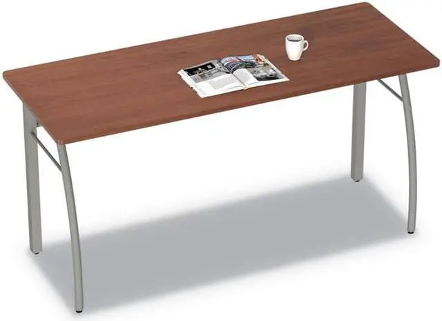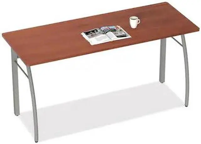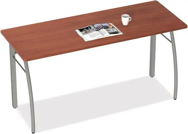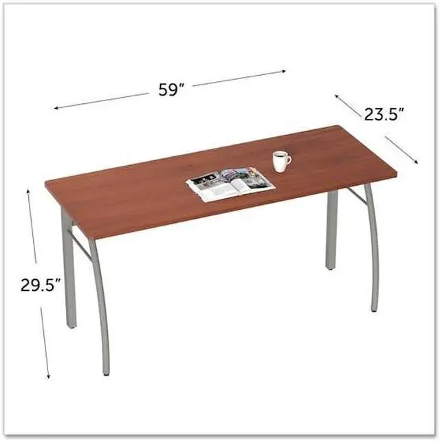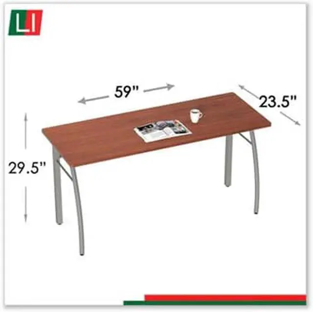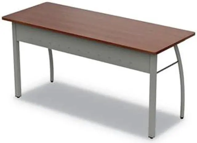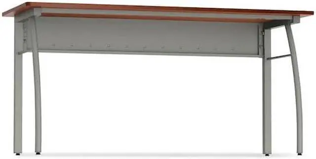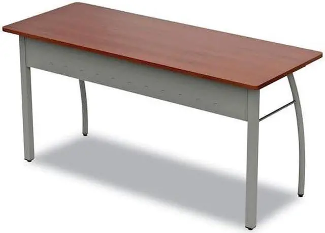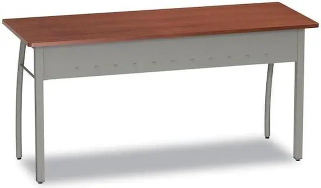 Scratch- and stain-resistant woodgrain laminate with durable edge and strong powder coated steel frame. Adjustable leveling glides for stability. Quick and easy assembly in minutes with no tools required. Configure multiple desks to perfectly fit your space. Includes metal modesty panels. Pedestals fit under desk. Series Name: Linea Italia Trento Line; Worksurface/Base Color: Cherry; Color Family: Cherry; Worksurface Shape: Rectangular.