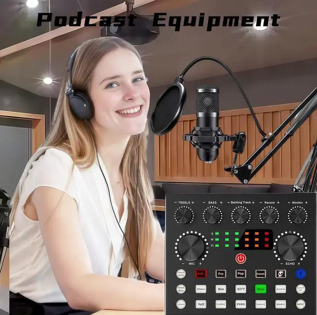 Transform your content creation with this comprehensive podcast equipment bundle featuring the BM-800 condenser microphone and V8s audio interface. Perfect for podcasting, live streaming, and vocal recording, this professional setup delivers crystal-clear audio with a wide frequency response of 20Hz-20kHz and an impressive 85dB signal-to-noise ratio. The innovative V8s voice changer lets you add creative effects and modulate your voice in real-time during broadcasts, while dual USB and 3.5mm connectivity ensures compatibility with laptops, desktop computers, and PC systems. This plug-and-play bundle includes essential accessories like a microphone stand and pop filter for professional sound capture. The compact 2.5-pound setup combines metal and plastic construction for durability, featuring a cardioid polar pattern that captures your voice with exceptional clarity. With its 2-channel system, built-in sound card, and 150-ohm impedance, this studio package delivers the audio quality needed for professional broadcasts, gaming commentary, and content creation.