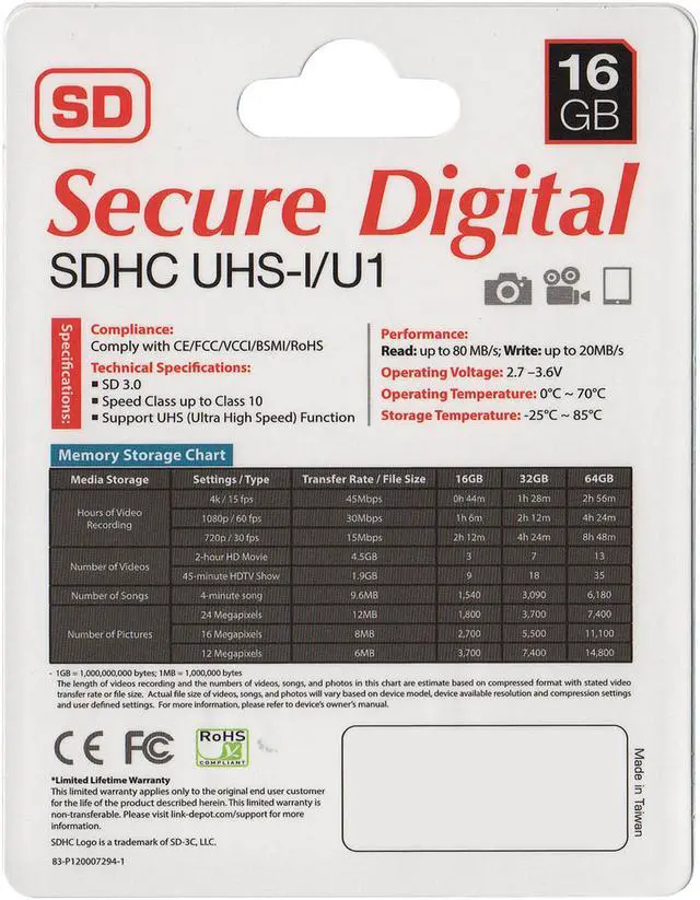 | Speed Class Rating | UHS-I / Class 10 |