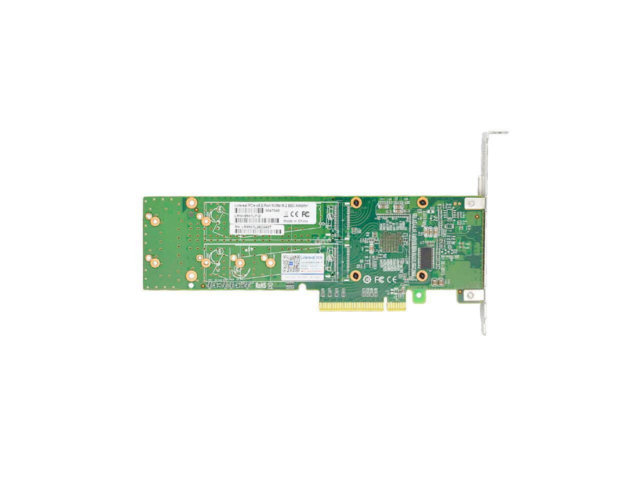 Linkreal PCIe 3.0 x8 to Dual M.2 NVMe Switch Adapter with Low Profile Bracket for Storage Servers