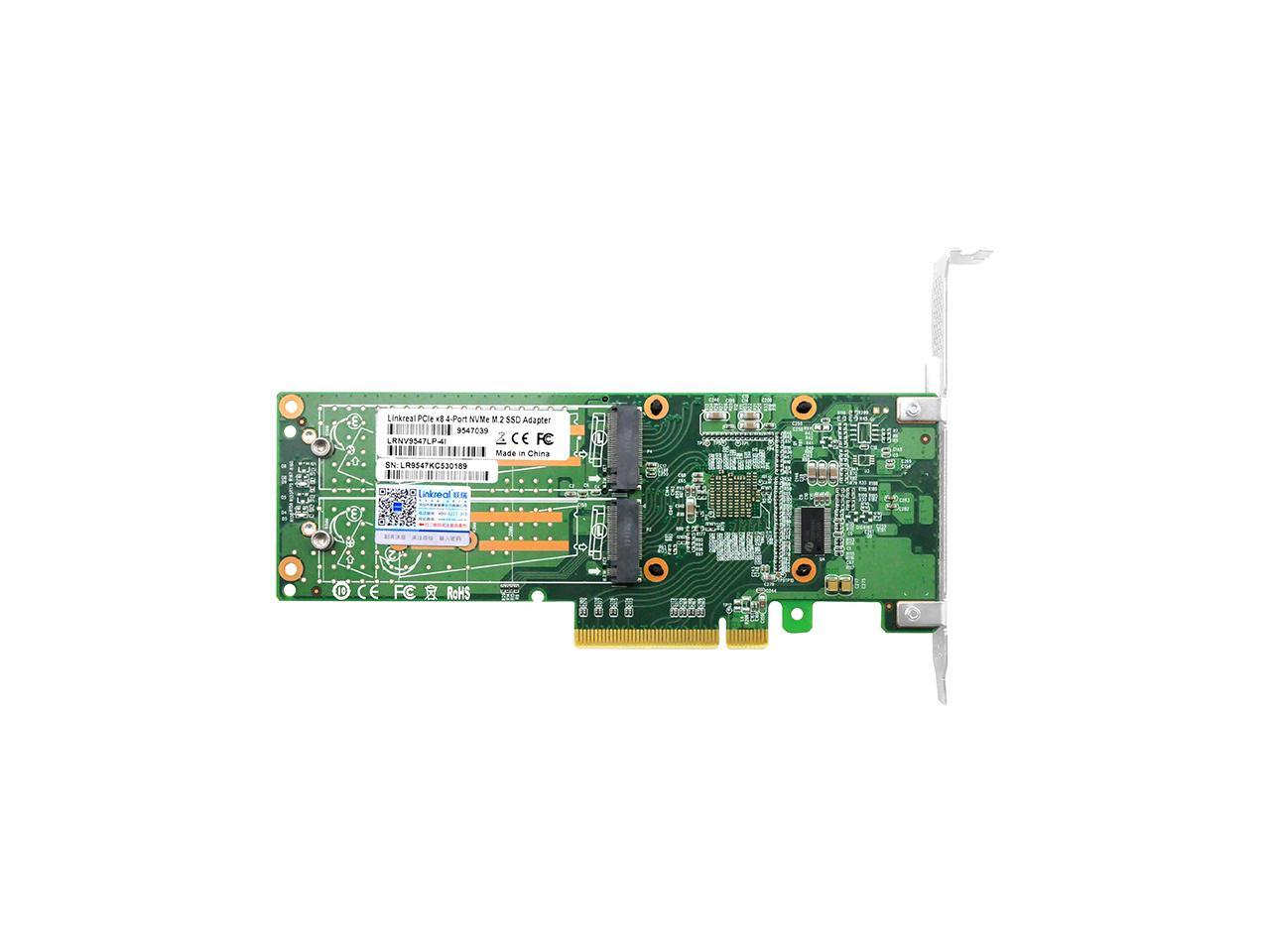 Linkreal PCIe 3.0 x8 to 4 Port M.2 NVMe SSD Switch Adapter with Low Profile Bracket for Server Storage Solutions