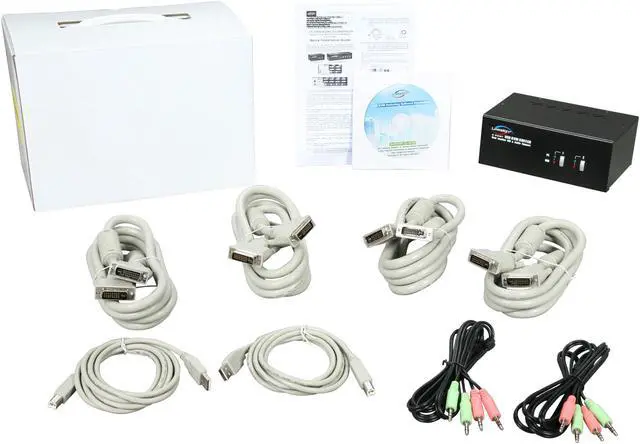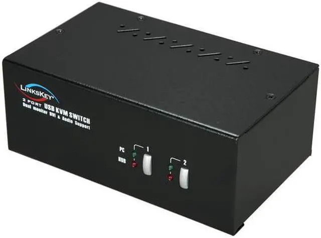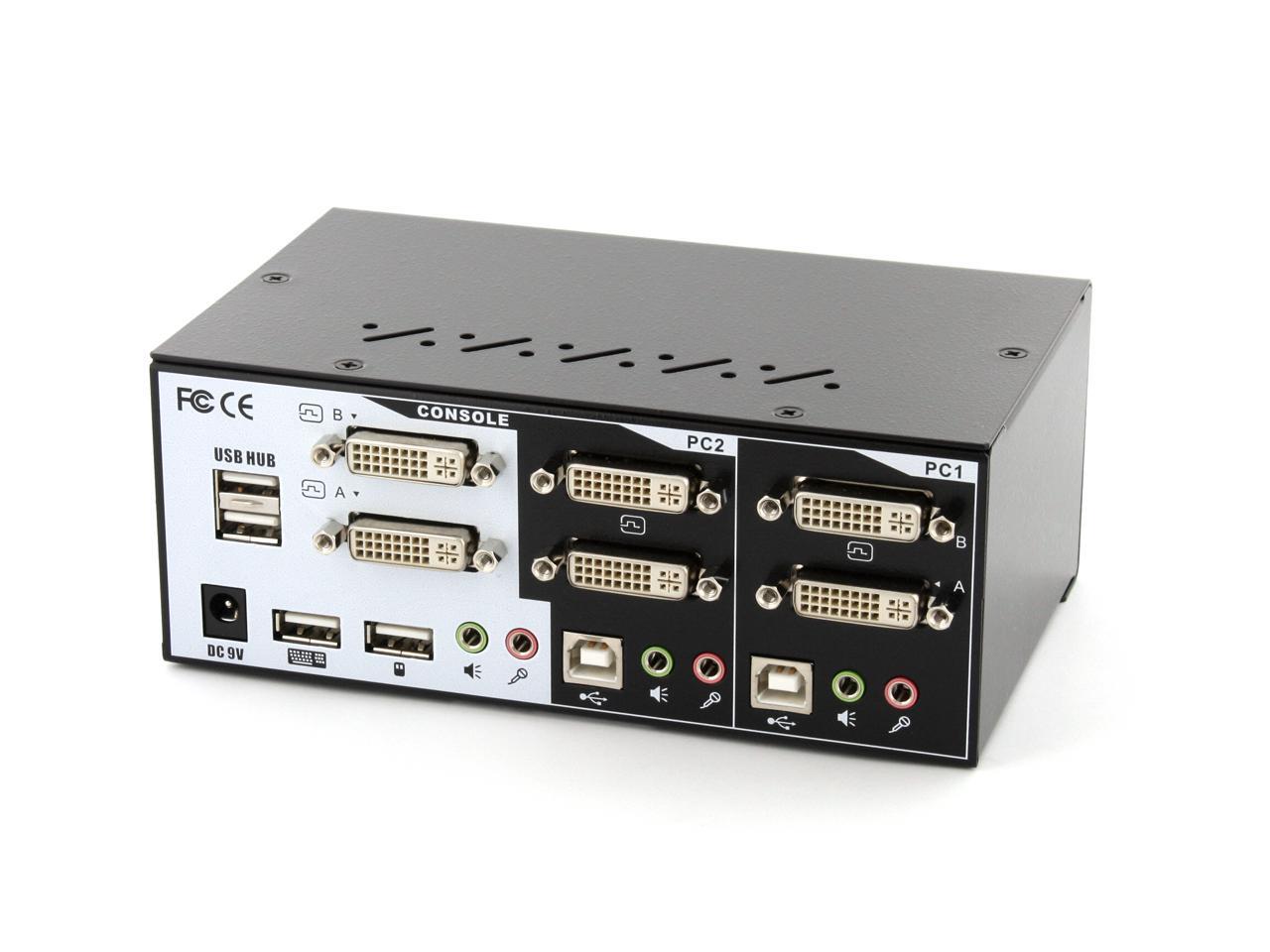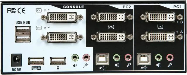 | Features | 2-port Dual Monitor (DVI+DVI) KVM switch Support sound for audio experience Support Dual Monitor Two DVI Support USB style keyboard and mouse Two USB 2.0 hub ports HDCP specifications compliant User-configurable simultaneous/Independent switching Channel selection by face-panel push buttons and keyboard hotkeys Support High Digital resolution (DVI) up to 1920 x 1200 Support High Analog resolution (VGA) up to 2048 x 1536 LED for easy status monitoring Buzzer sound for port switching confirmation Metal enclosure for best shielding and protection True Transparent USB (TTU) Emulation technology with an integrated ASIC Full driver support for all types of USB keyboard and mouse All-time full DDC/EDID emulation for video compatibility and stability HDCP specifications compliant |