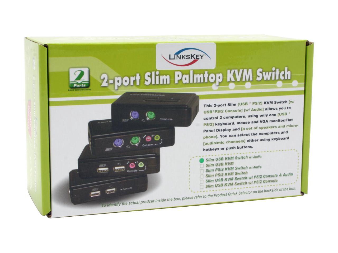 LINKSKEY LKU-S02ASK Slim Palmtop USB Audio & Mic KVM Switch w/ Cables
