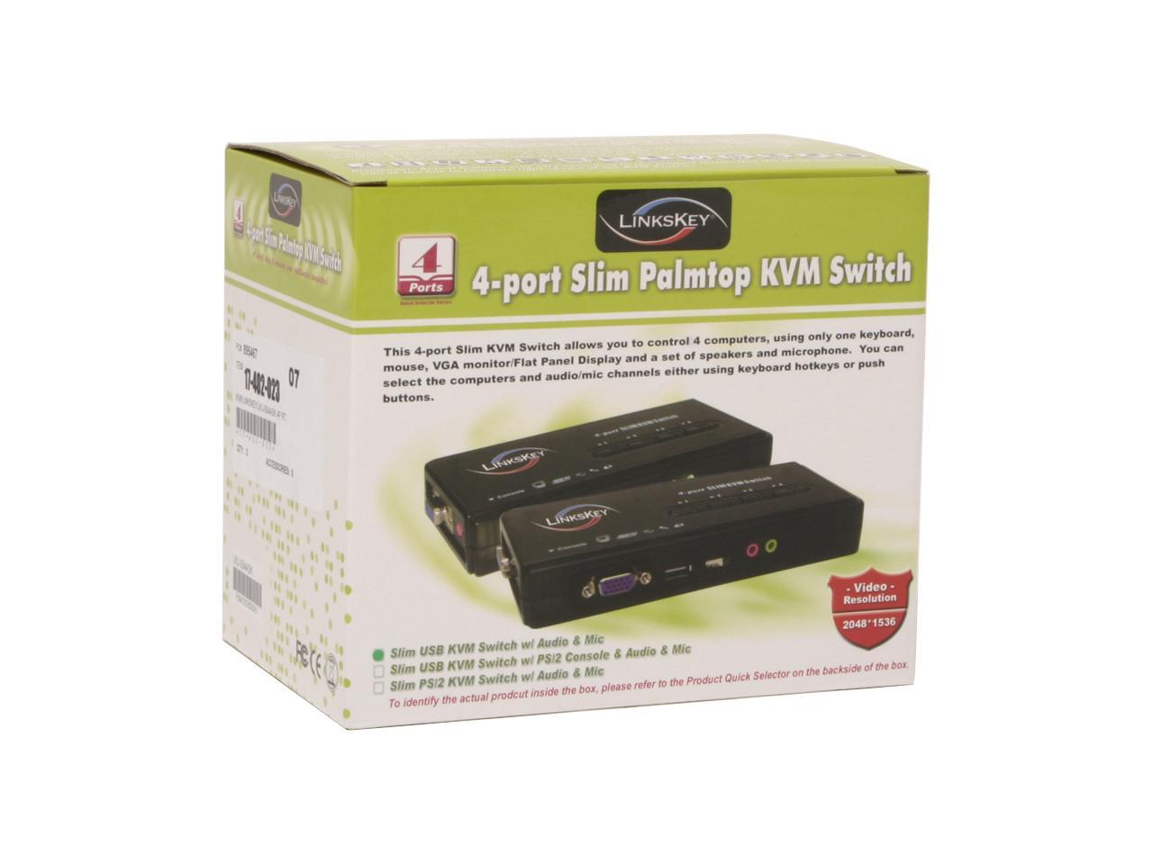 LINKSKEY LKU-S04ASK 4-port Slim Palmtop USB Audio & Mic KVM Switch w/ Cables