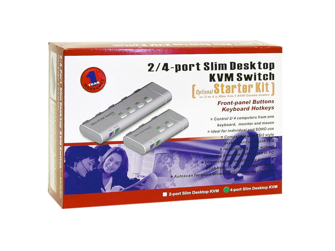 LINKSKEY LKV-S04SK 4-Port Slim Desktop KVM Switch w/3-in-1 Combo Cables