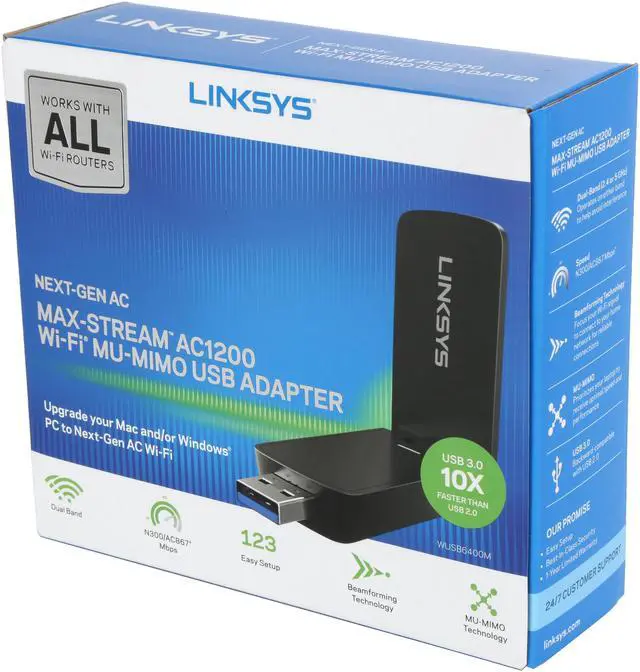 This AC USB adapter instantly upgrades your Windows®-based laptop or PC/Mac to the latest Wi-Fi standard, which is 2x faster than AC600 technology. This effectively makes your laptop/PC/Mac a MU-MIMO device, thereby allowing the Wi-Fi signal in your home to be distributed more efficiently to more Wi-Fi devices for stronger overall Wi-Fi coverage.