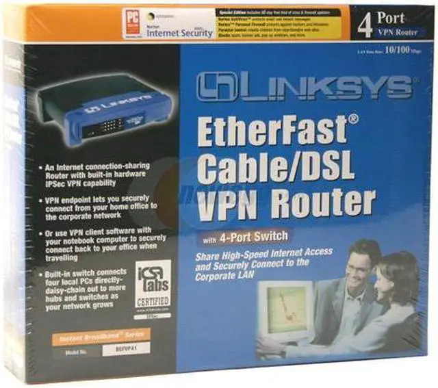 The Instant Broadband EtherFast Cable/DSL VPN Router from Linksys is the ideal solution for remotely accessing a network securely over the Internet using cutting edge encryption and authentication methods.