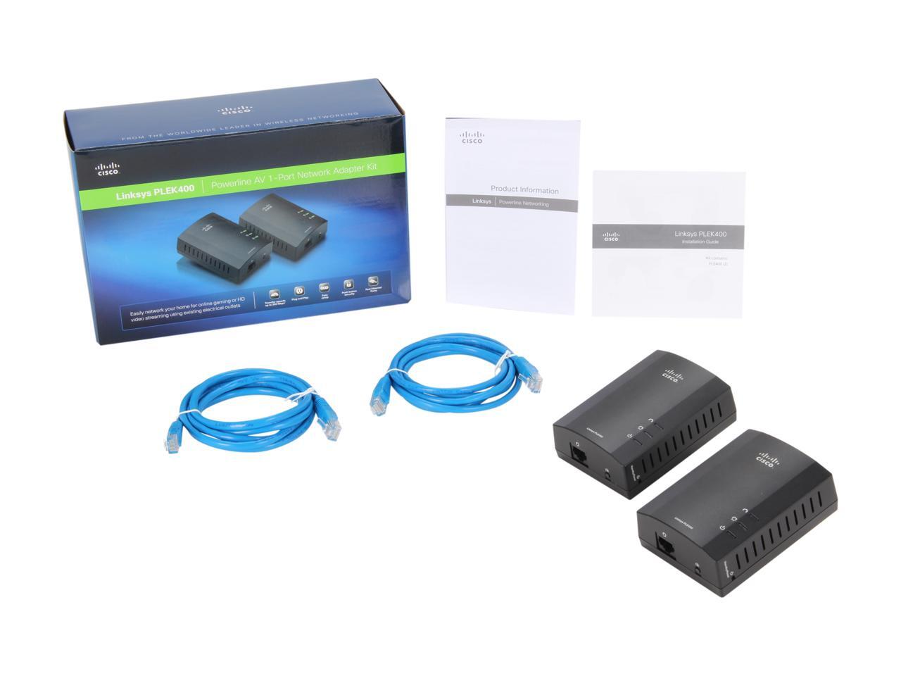 LINKSYS PLEK400 Powerline AV 1-Port Network Adapter Kit Up to 200Mbps
