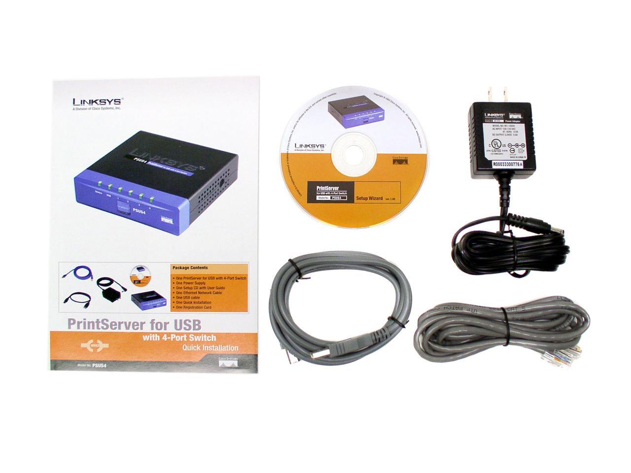 LINKSYS PSUS4 PrintServer for USB with 4 port Switch RJ45 USB 1.1
