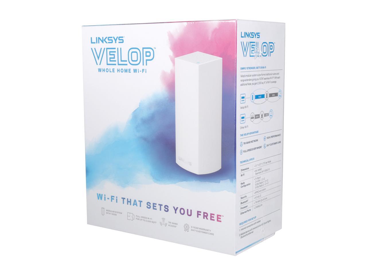 Linksys Velop Tri-band Whole Home Wi-Fi Mesh Node, 1-Pack Starter / Add-On Unit (Coverage Up to 2000 sq. ft.), Works with Amazon Alexa