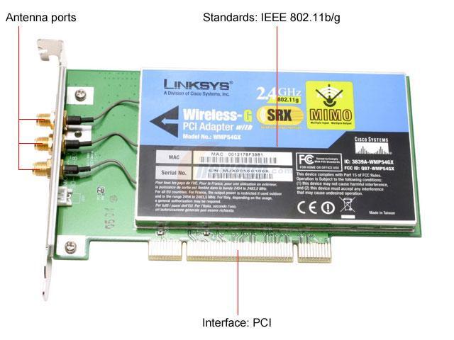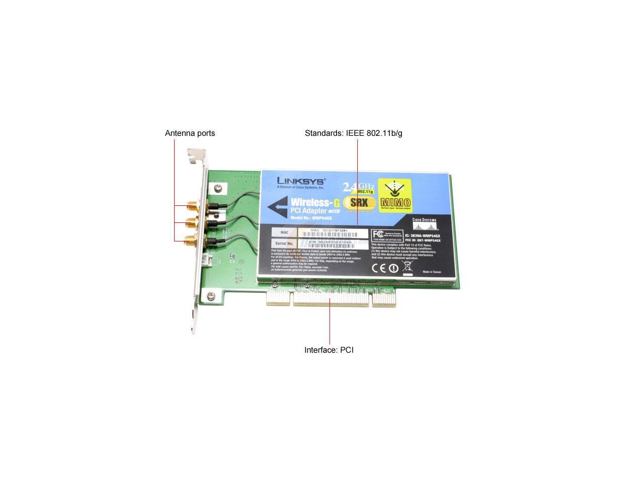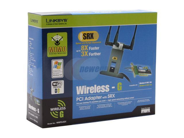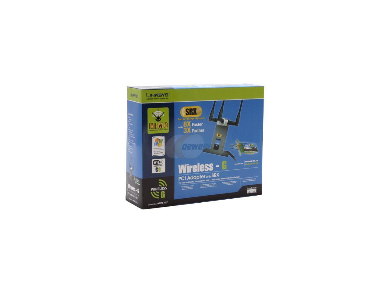 Linksys WMP54GX Wireless-G Adapter with SRX IEEE 802.11b/g PCI Up to 108Mbps Wireless Data Rates
