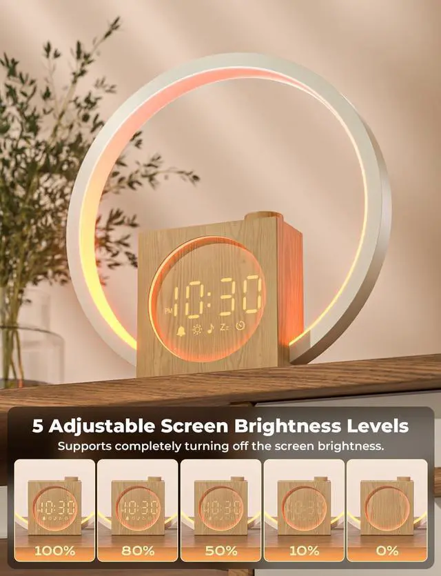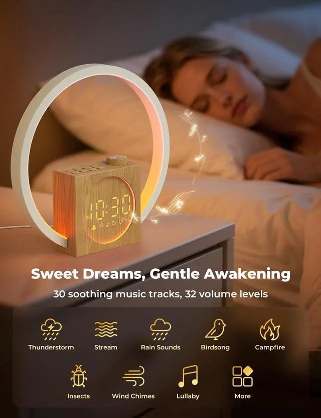 It's more than just an alarm clock; it's a white noise machine. Enjoy 10 types of white noise and 20 built-in nature sounds, transforming your space into a peaceful haven where you can relax and sleep better.