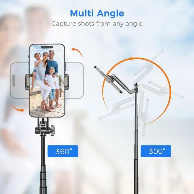 Multi-Angle Shot: With a max height of 63, this tripod stand with a 300-degree rotation head and 360-degree rotation holder allows you to capture shots from any angle, catering to different photography needs.