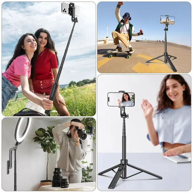 Portable Travel Tripod: The height of this cell phone tripod with remote can be adjusted from 11 to 63 makes it really easy to set up. It gives you an excellent vantage point for capturing photos and videos.