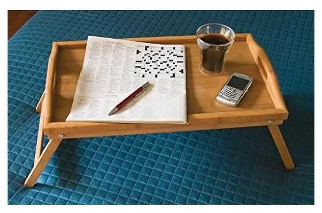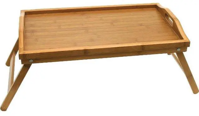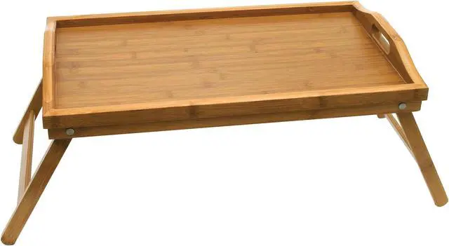Bed tray is perfect for eating or reading in bed. Folding legs allow for easy storage. Made of environmentally friendly bamboo. Measurements vary (see Dimensions & Specifications for details).