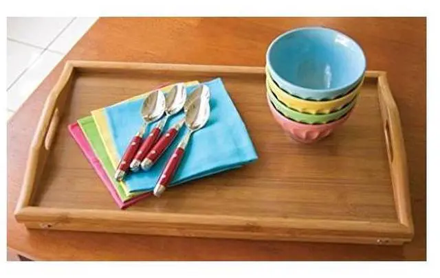 There is no better way to spoil yourself than breakfast in bed. The Bamboo Bed Tray with Folding Legs is the perfect way to make that possible. The tray is the ultimate in convenience, offering plenty of surface area to transport large quantities of food. The high side walls help keep things on the tray and the handle cutouts make for easy carrying. It also includes folding legs to make for easy storage. The Bamboo Bed Tray is an elegant and wonderful addition to any home.