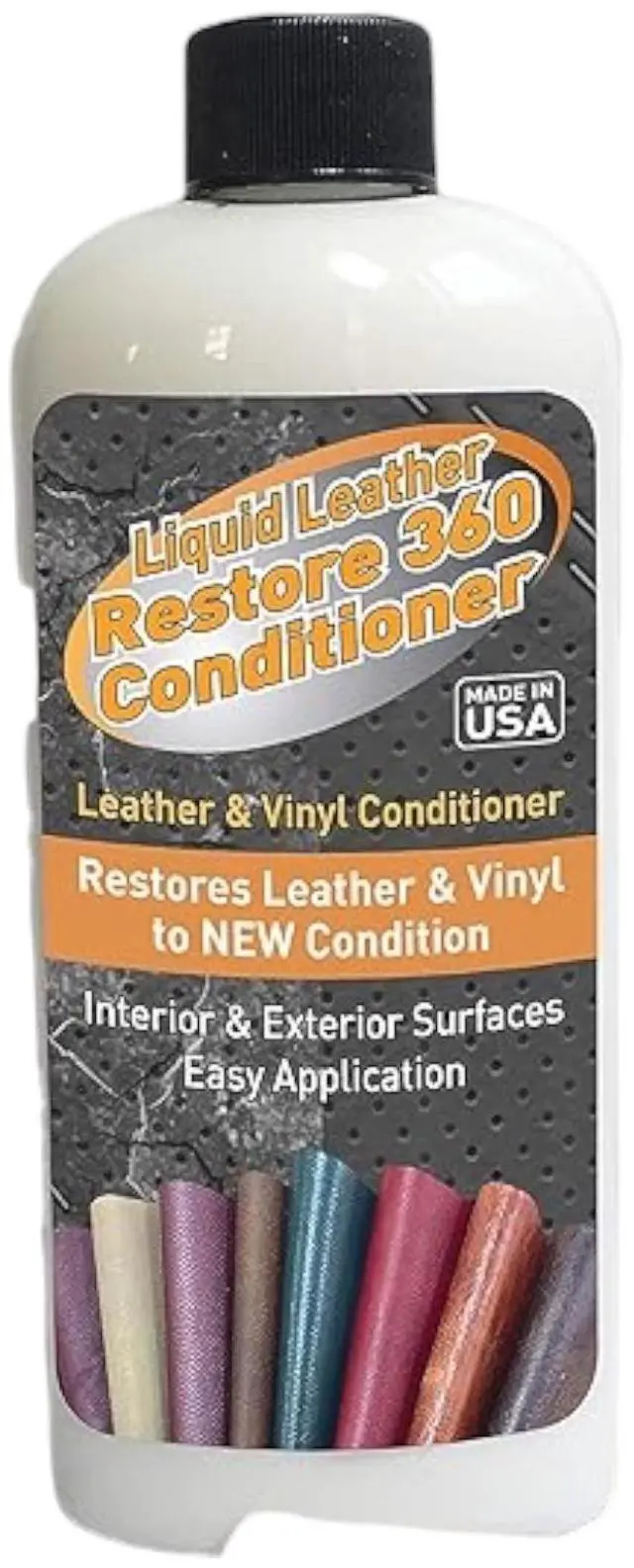 Revitalize your leather and vinyl surfaces with Liquid Leather Restore 360 Conditioner a premium 8 fl. oz. formula designed to deeply nourish protect and restore suppleness to a wide range of items. Ideal for automotive interiors furniture shoes bags jackets and accessories this non-greasy conditioner penetrates deep into the material to rehydrate dry cracked or faded surfaces bringing back their original luster and flexibility without leaving a sticky residue.